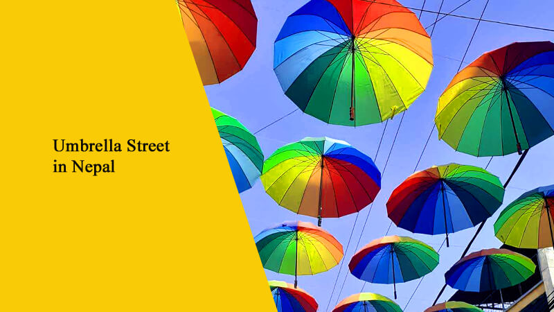 The streets decorated with colorful umbrellas has named Umbrella Street. It has been constructed in some places in Nepal i.e. Chitwan, Kathmandu, Pokhara, Itahari, and Dharan.